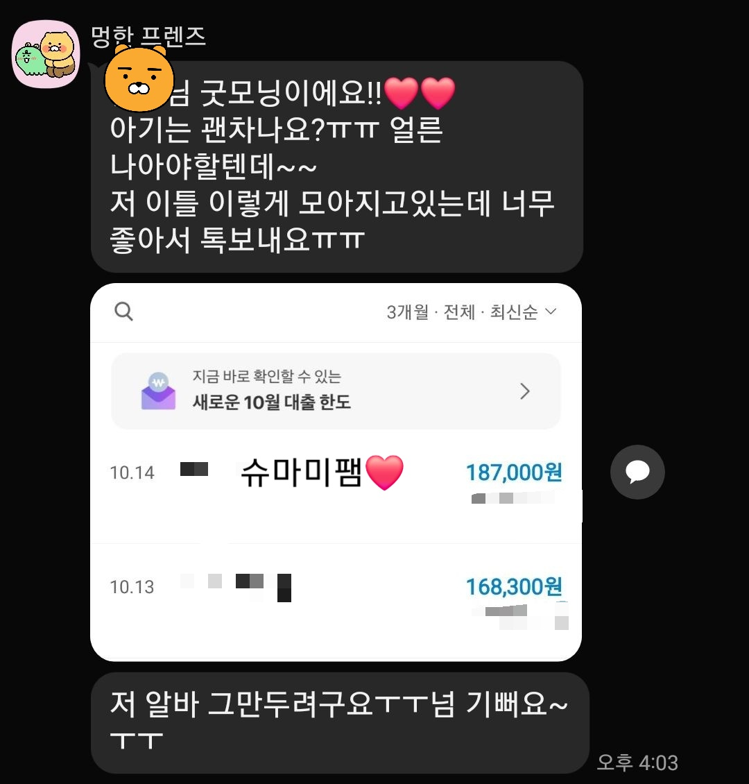 | 슈마미팸이면 못 벌 수가 없지♥ [수익 인증 후기 모음] (0) | 2025.10.15 |